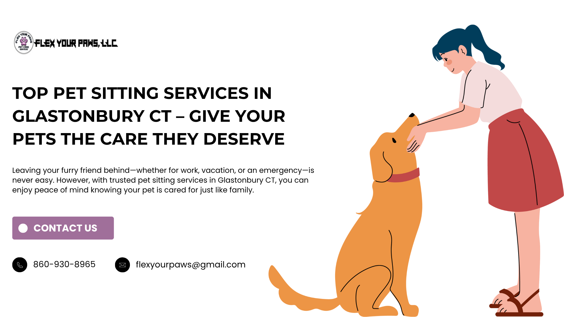 When you’re a busy pet parent, finding someone you can trust to care for your furry family members is essential. At Flex Your Paws LLC, we proudly provide dependable Professional Pet Sitter services in Rocky Hill CT. Whether you’re at work, traveling, or simply need an extra hand, our team ensures your pets are safe, happy, and comfortable